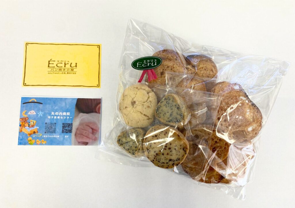 - 産後のお母さんには、松本市のパン店「Ecru」の焼き菓子セットをプレゼント