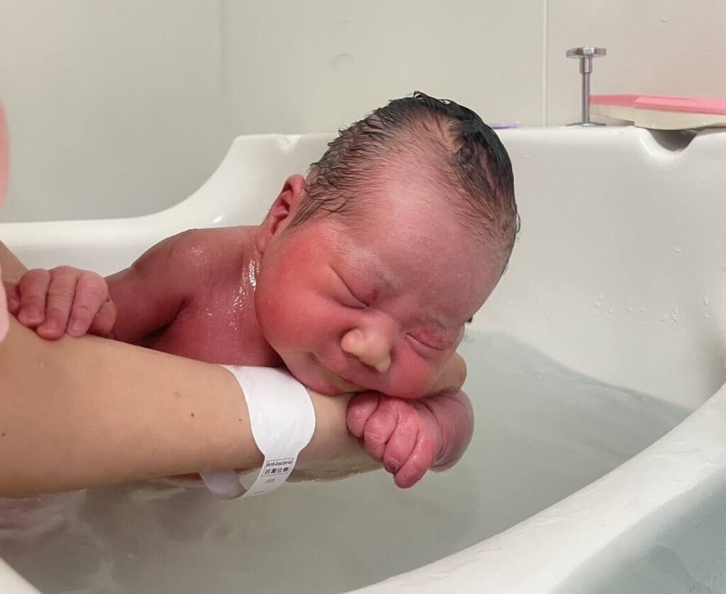 赤ちゃんは小児科医による全身チェックを受けた後、助産師による沐浴が行われます。