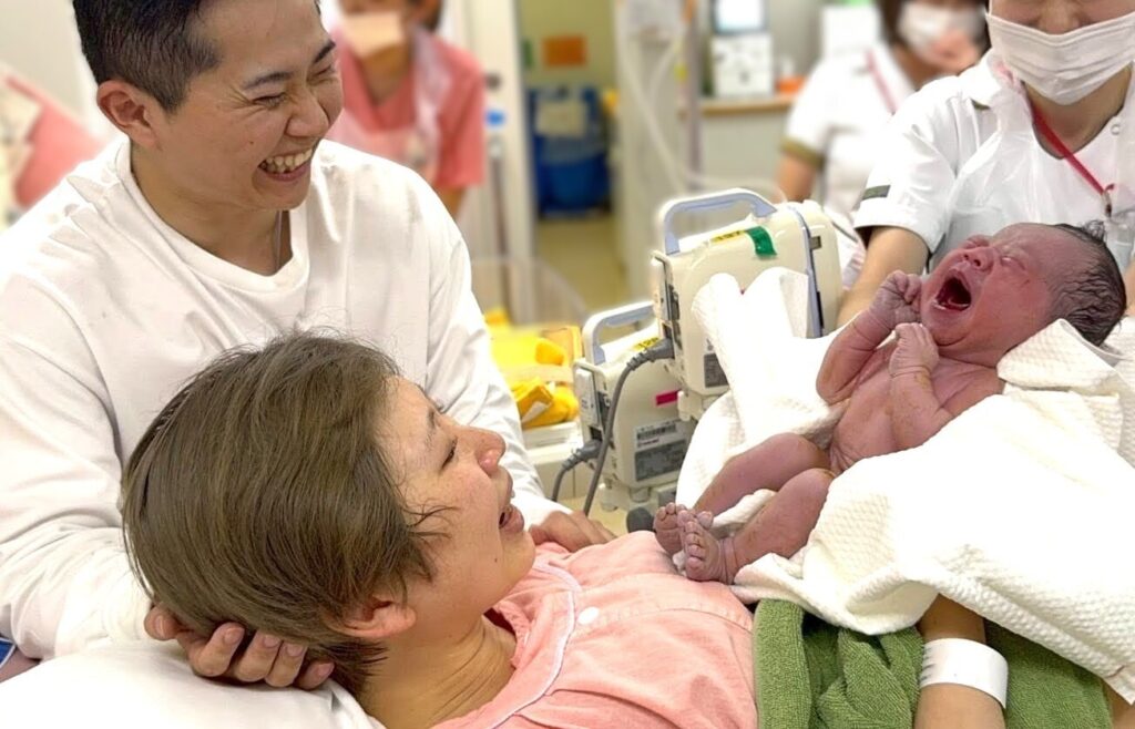 何度もいきみを繰り返し、ようやく元気な産声が響きます。分娩室は安堵と喜びに包まれました。
