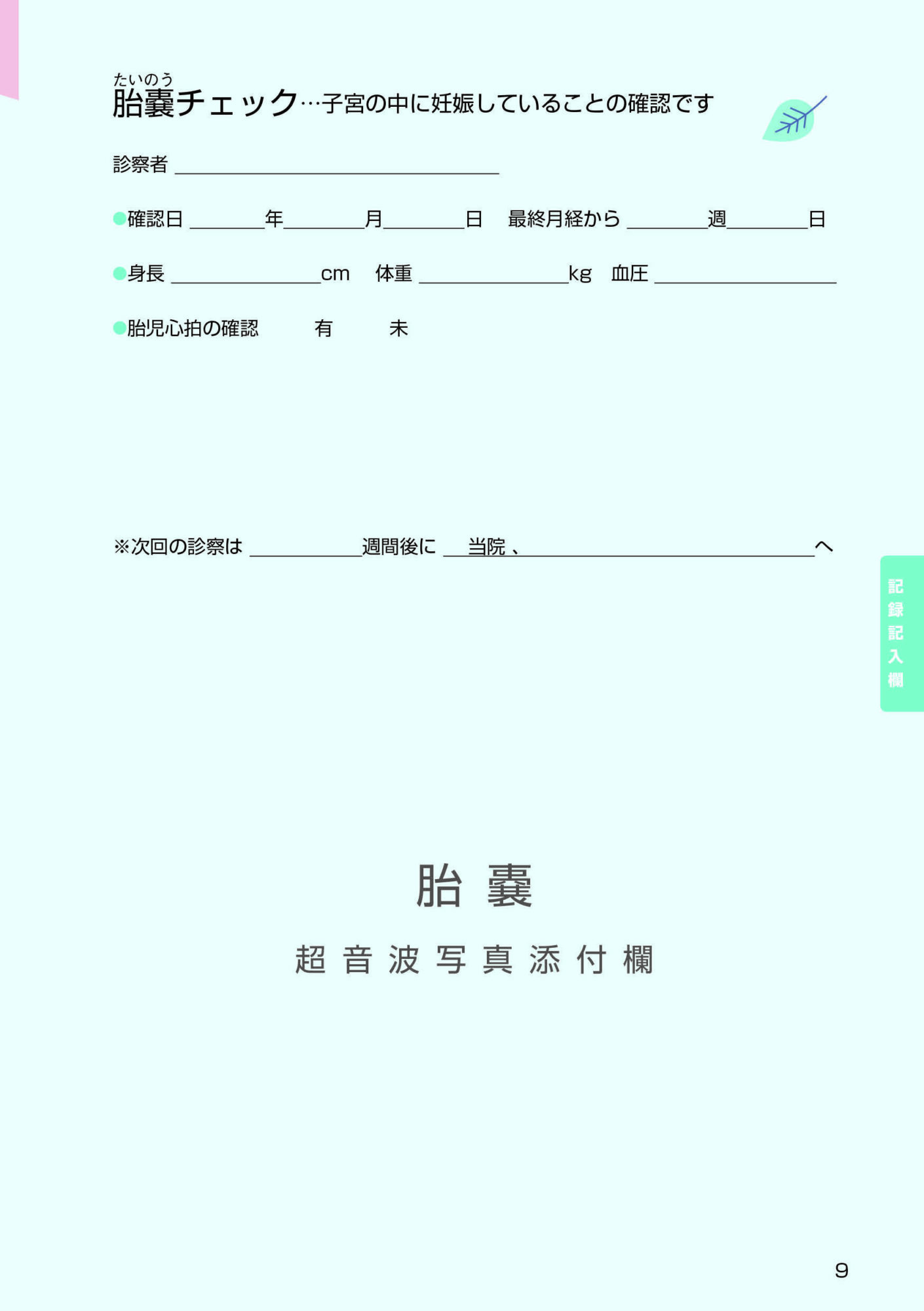 胎嚢(たいのう)チェックページは、妊娠初期に体調が悪い時の自己判断の際の判断基準になるページです。