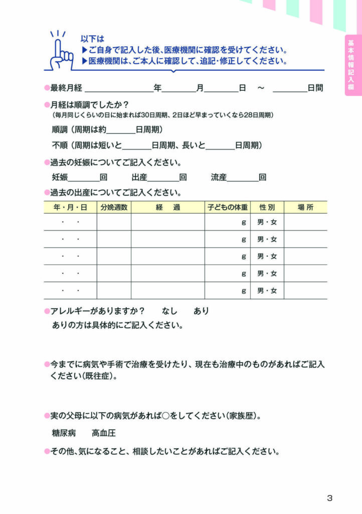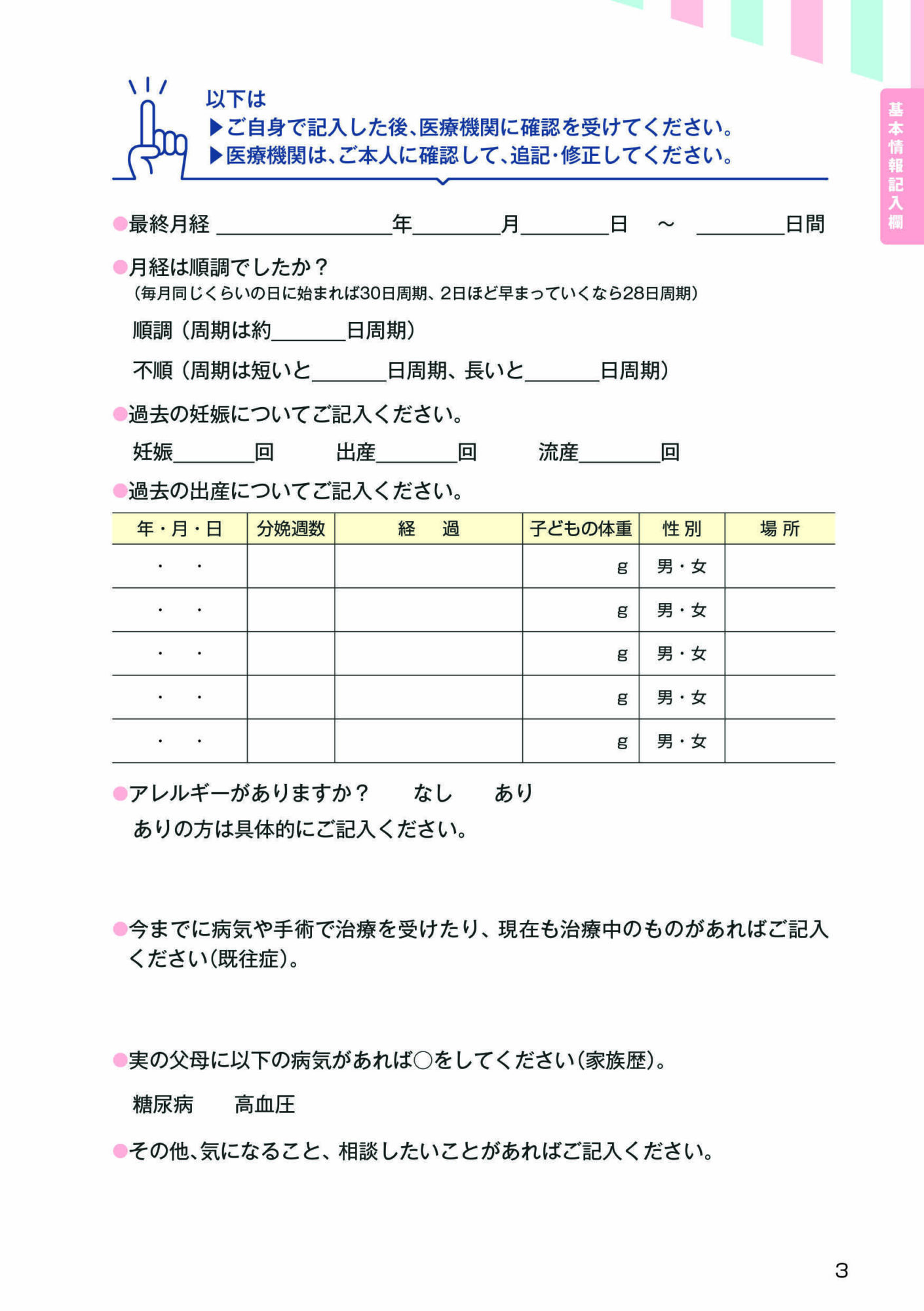 妊婦検診を記録する部分はそのままに、妊婦さんや医療機関のご意見ご要望を反映したページ構成・内容にリニューアルしました。