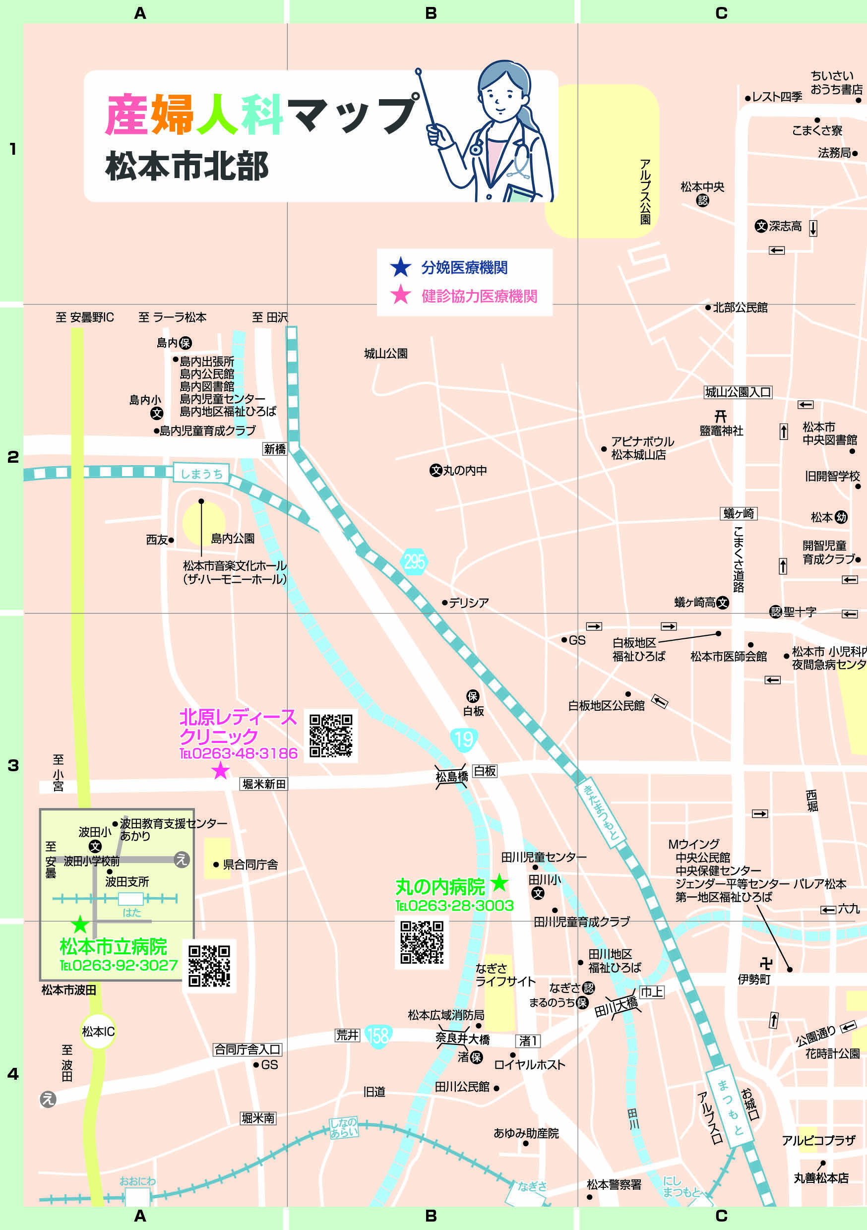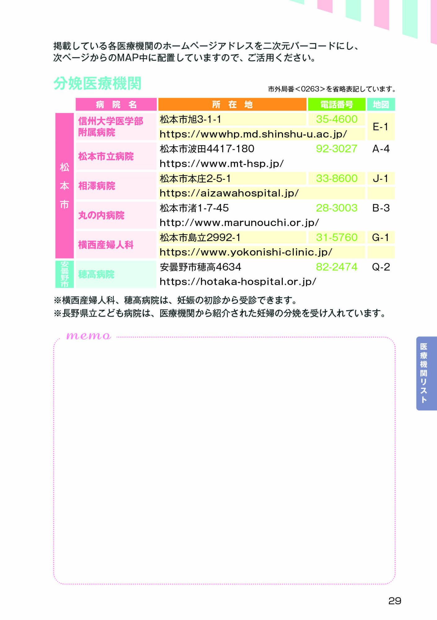 ・健診協力医療機関、分娩医療機関の基本情報が記載されています。