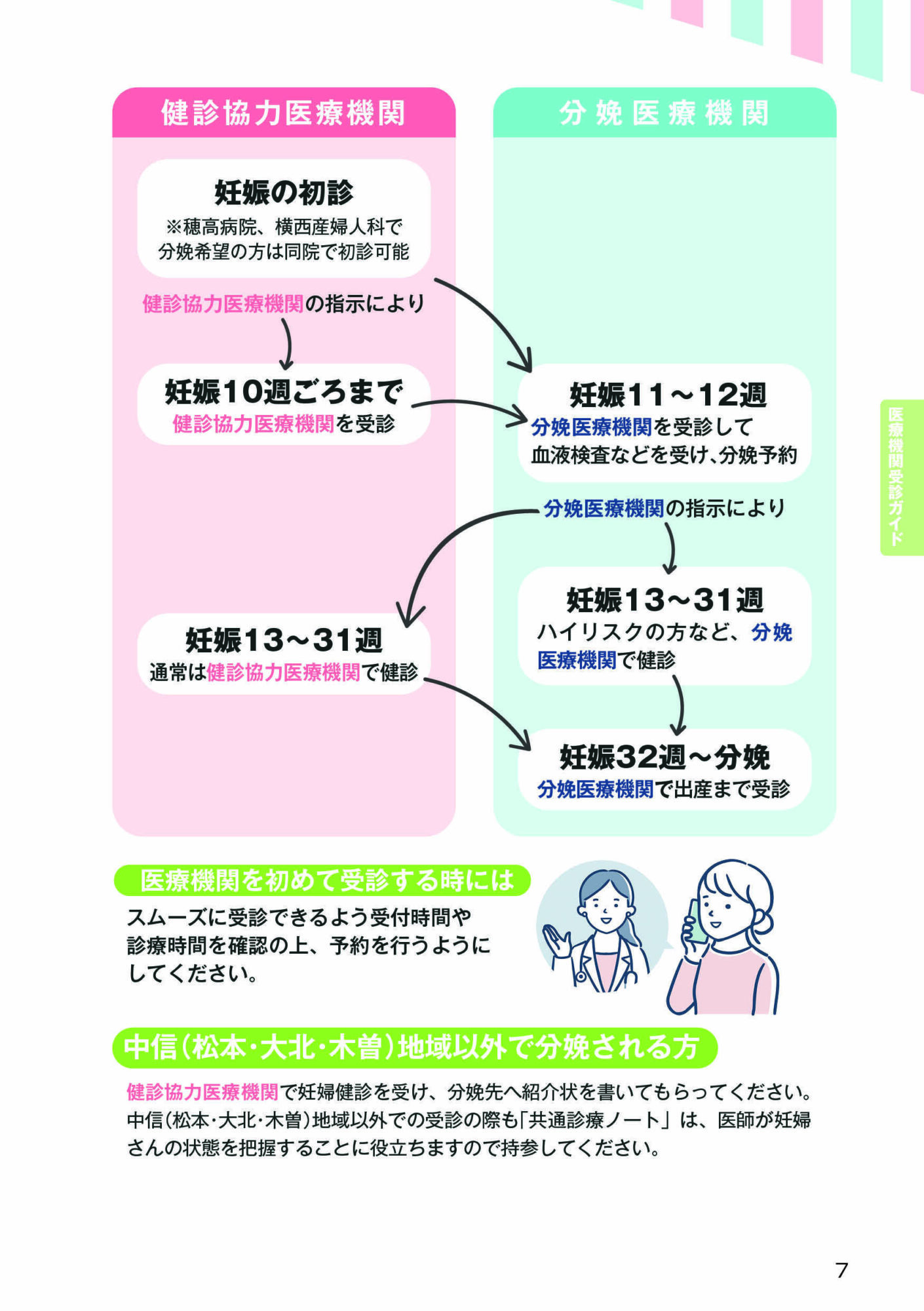 ・中信地域での妊娠から分娩までの手順が記載されています。
