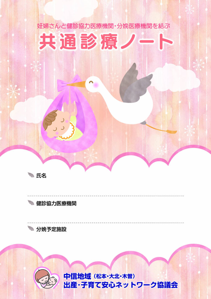 はい。共通診療ノートは、中信地域で妊娠が確認された妊婦さんにお渡しするノートです。